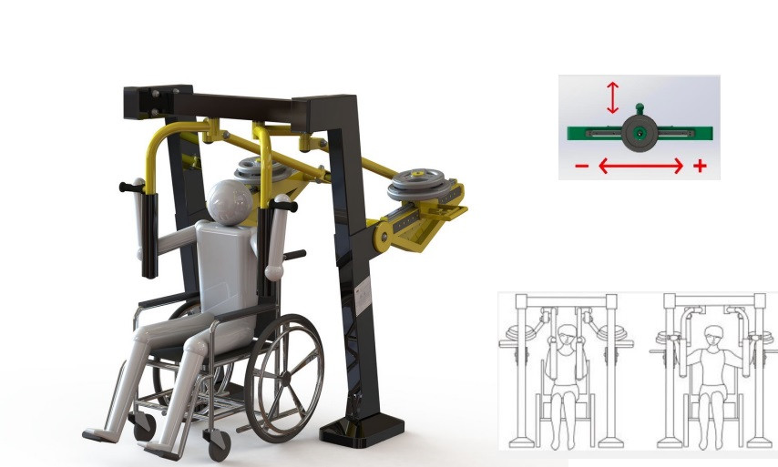 Cette machine pectorale PMR est un appareil de musculation adapté aux personnes à mobilité réduite.