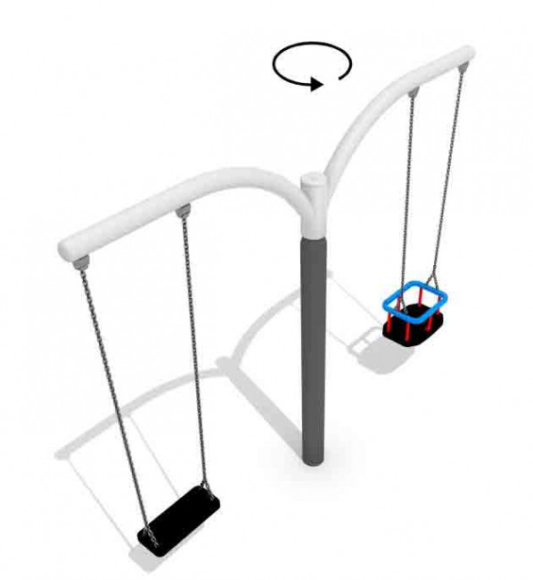Il est composé d’un siège bébé suspendu sur chaine et d’un siège plat suspendu sur chaine.