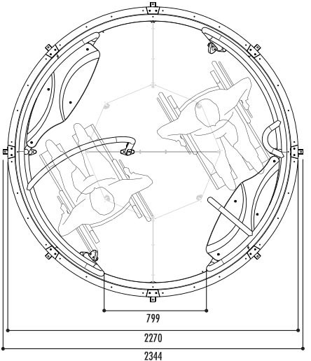 Conçu pour accueillir simultanément 2 fauteuils roulants, ce jeu rotatif garantit une inclusion totale dans l'espace de jeu.
