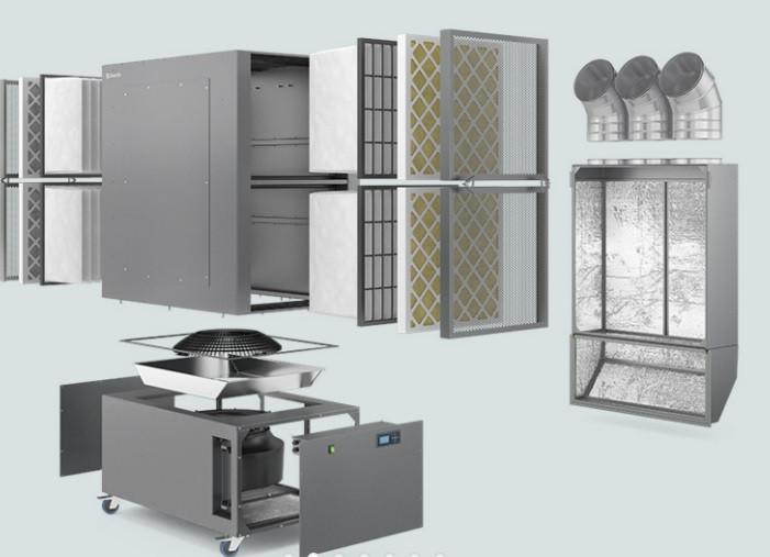 purificateur d’air industriel qui permet de reduire les particules de combustion, les ingrédients en poudre et les fibres présents dans l'air.