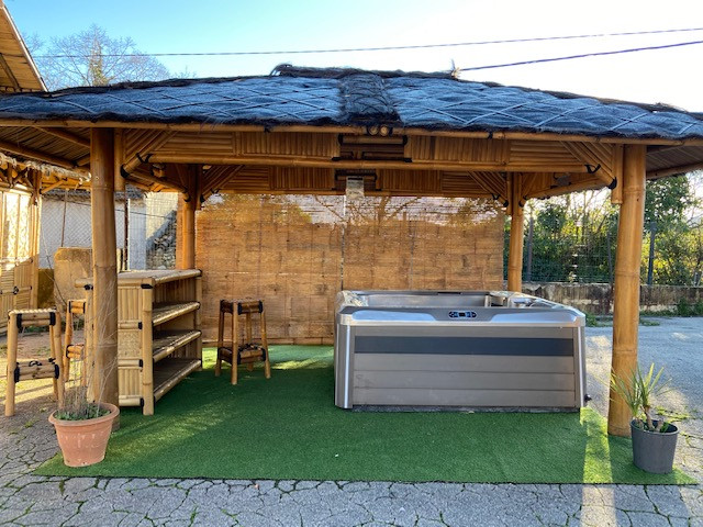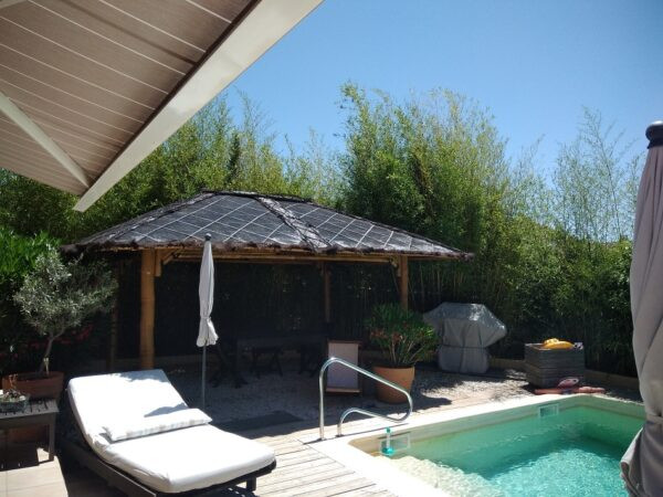 - Permet d’accueillir un salon, une salle à manger, des transats ou encore un jacuzzi