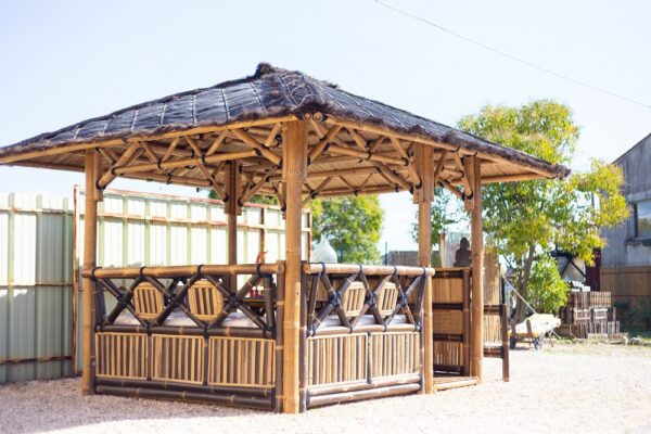 Cet abri de jardin en bambou avec bar ajoutera une touche tropicale à votre jardin ou terrasse.