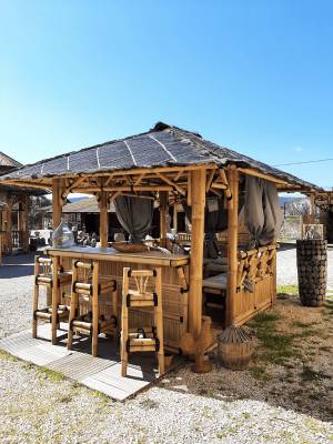 Conçu pour s’adapter à vos mange-debout, bars extérieurs ou gazébos, il associe le charme du mobilier en bambou à une structure robuste, pensée pour durer.
