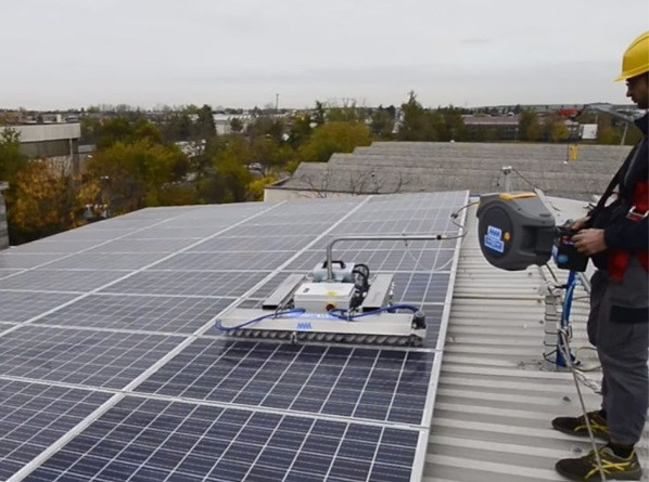 Ce robot nettoyeur de panneaux solaires est un appareil innovant et efficace qui vous permet de nettoyer vos installations photovoltaïques sur les toits de moyennes et grandes surfaces.