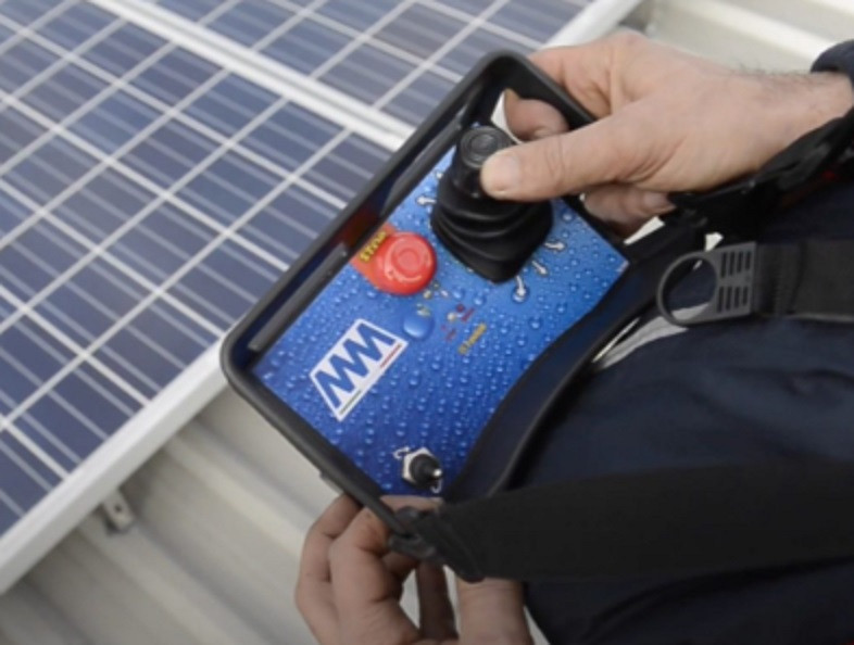 Le robot nettoyeur de panneaux solaires est compact et facile à manipuler, grâce à sa télécommande sans fil dotée d'un joystick sensible et précis.