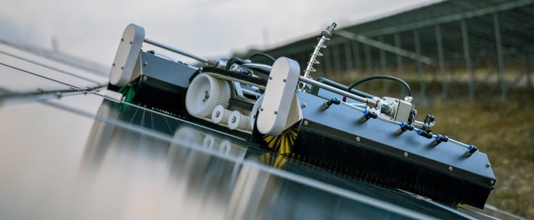 - Équipé de brosses hélicoïdales de 0,8 m de long avec deux types de poils adaptés aux cellules solaires à couche mince.