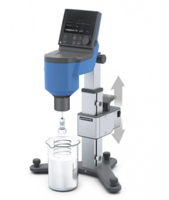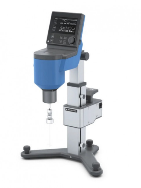 L'ensemble est complété par le viscosimètre motorisé, qui déplace lentement et uniformément le viscosimètre monté ainsi que son corps rotatif de haut en bas dans l'échantillon.