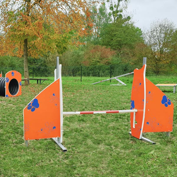 Les deux niveaux de hauteur permettent d’adapter le saut à la taille et au niveau des chiens, pour un travail progressif et maîtrisé.