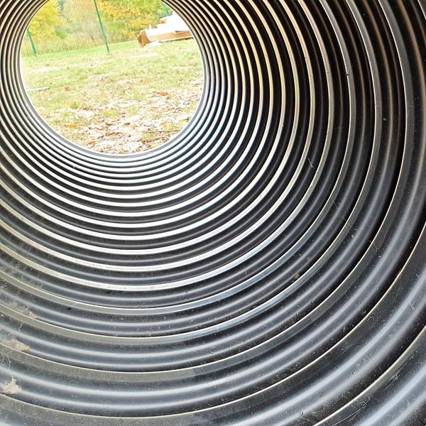 Fabriqué en PEHD recyclé, ce tunnel contribue à valoriser une démarche d’aménagement plus responsable tout en offrant une excellente tenue dans le temps.