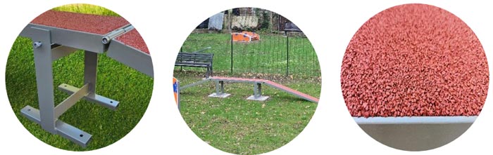 Le plateau de la passerelle est recouvert d’un revêtement en tartan antichute, spécialement pensé pour offrir une surface antidérapante et confortable.