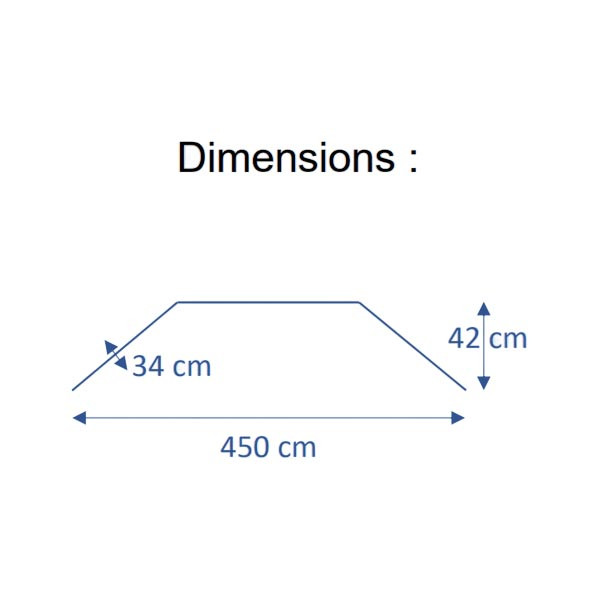 Avec ses dimensions de 450 x 34 x 42 cm, cette passerelle d’entraînement pour chien constitue un obstacle de taille suffisante pour travailler l’équilibre, la coordination et la confiance du chien, tout en restant accessible à la majorité des gabarits.