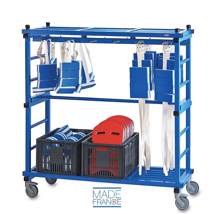 Ce chariot piscine porte ceintures est un équipement à la fois pratique et esthétique, idéal pour stocker tout type de matériel de natation, y compris les ceintures grâce à ses crochets, les planches de natation, mais aussi des bacs de rangement.