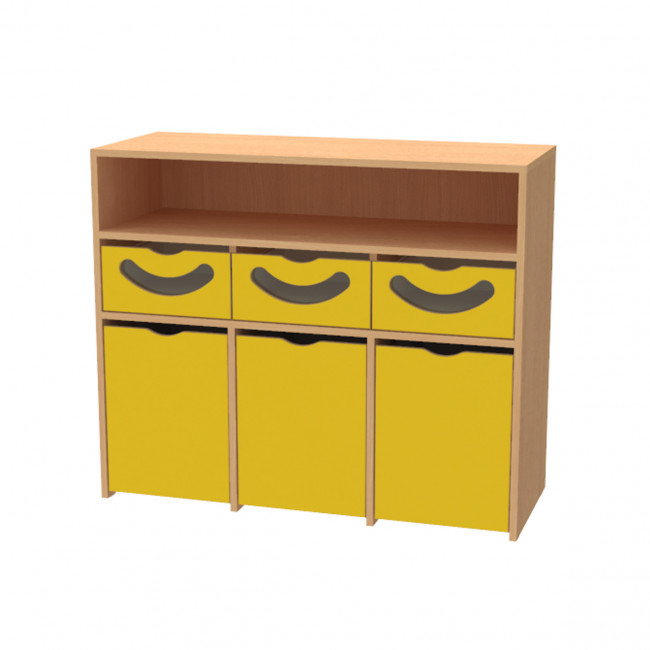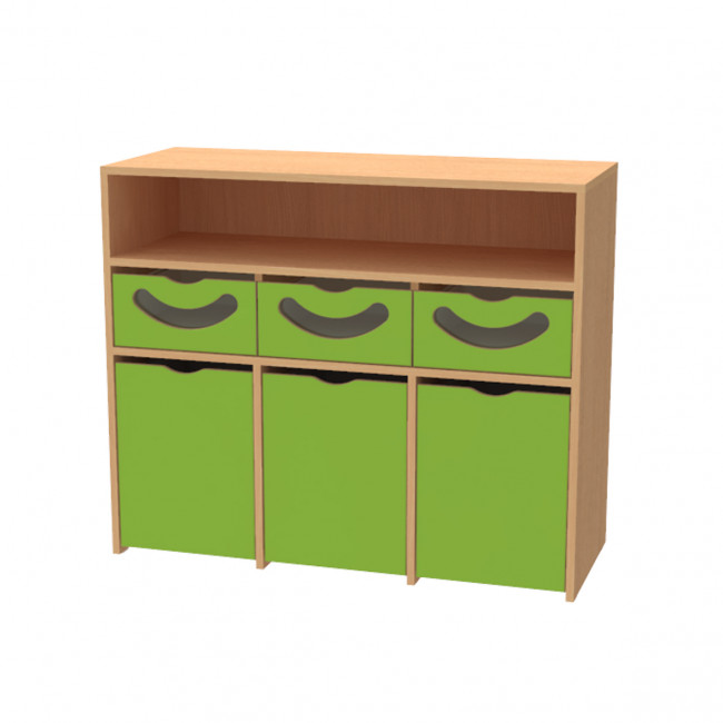 Le mobilier de rangement spécialement conçu pour les crèches constitue une pièce en bois parfaitement adaptée aux besoins des tout-petits.