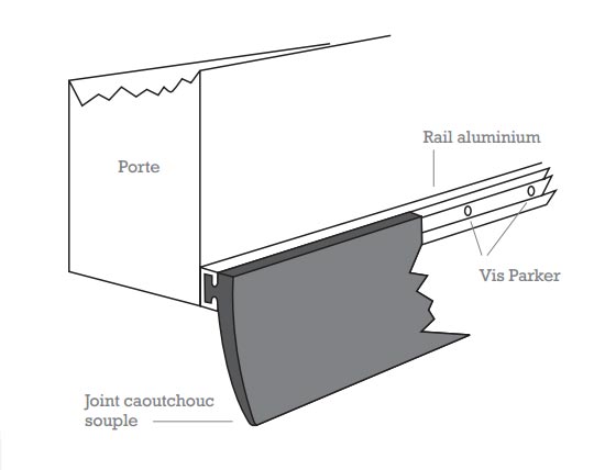 bavette porte de garage, joint caoutchouc de 2.50m + un rail aluminium 2.50 m
