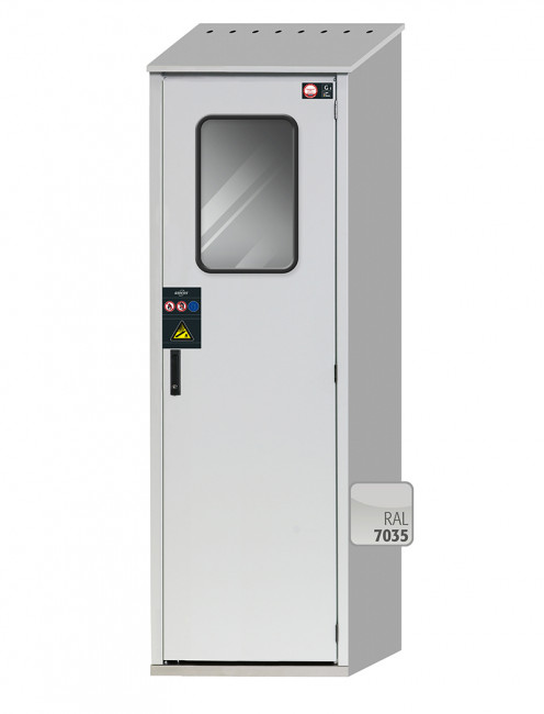 gris clair RAL 7035, avec une finition texturée. Cette esthétique neutre permet une intégration dans tout environnement industriel ou technique.