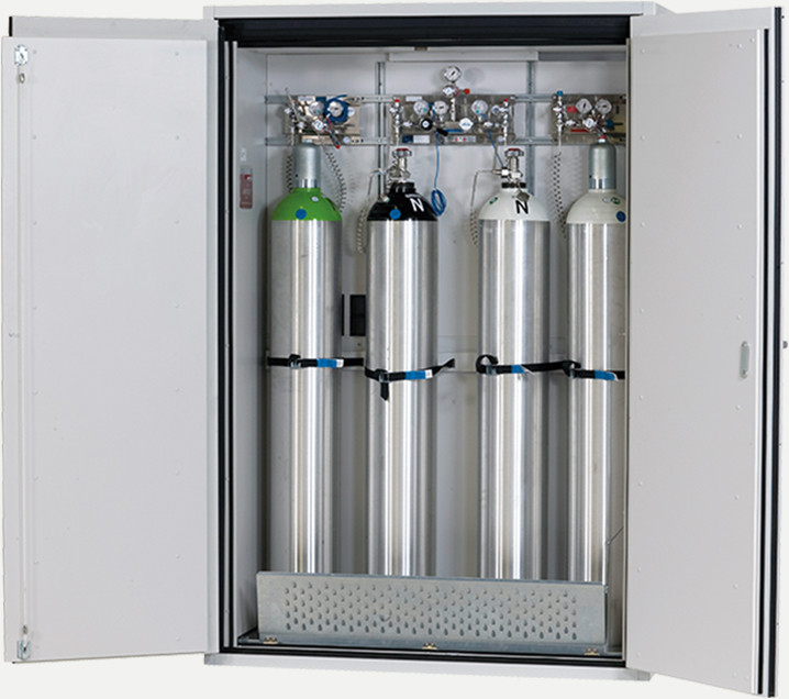 Cette armoire de sécurité dispose d’une capacité allant jusqu'à 4 bouteilles de gaz de 50 litres.