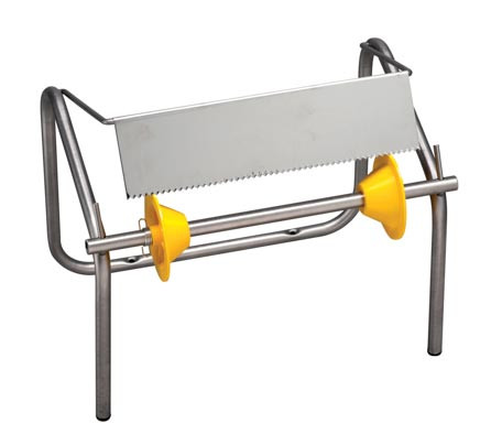 La lame dentelée facilite la découpe nette du papier et les deux cônes de verrouillage assurent un maintien sécurisé de la bobine, sans risque de sortie intempestive.