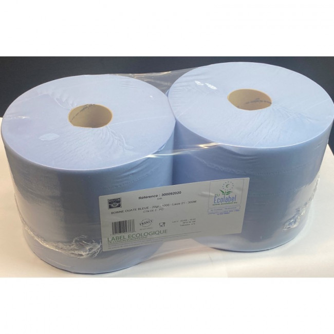 Ce lot de 2 Bobines essuyage industriel bleue présente une bonne absorption pour l'essuyage fréquent des mains.