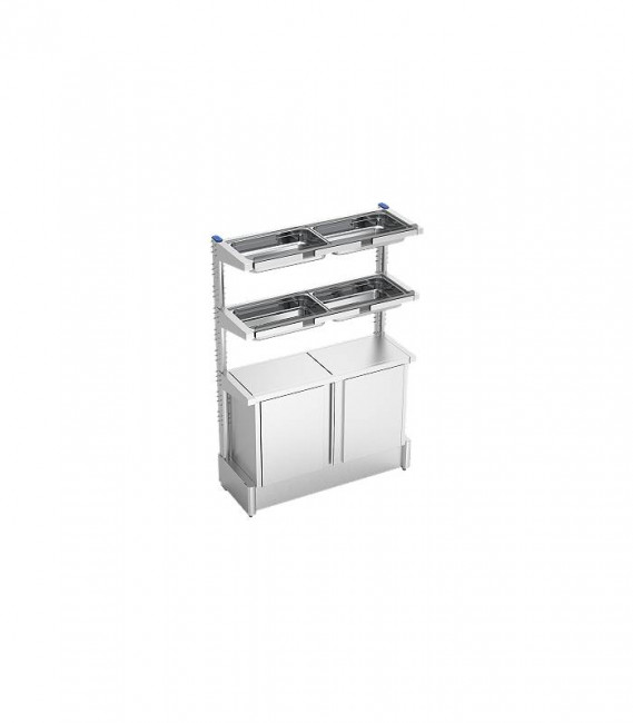 Ce rayonnage avec armoire est spécialement conçu pour les professionnels de la restauration et les points de vente de jus de fruits.