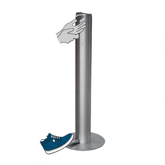 Borne à gel hydroalcoolique en Inox ou Aluminium ultra-robuste, deux modèles au choix, convient en intérieur et extérieur.