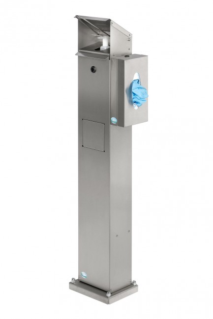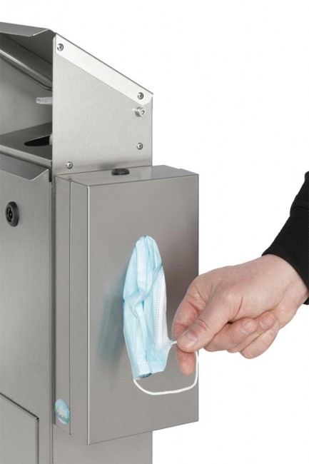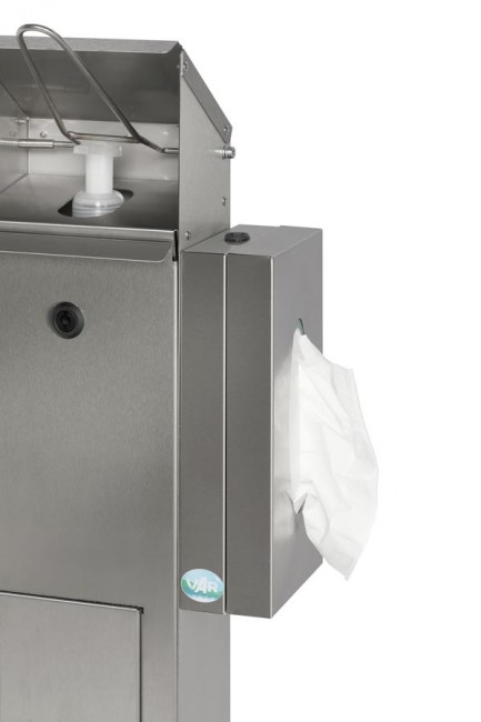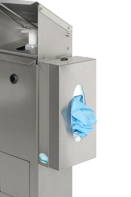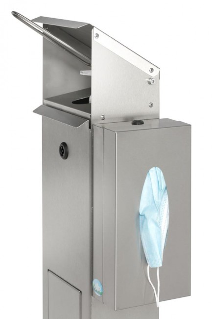 C'est un distributeur multifonctions qui contient également un support pour distribuer des gants, mouchoirs ou masques.