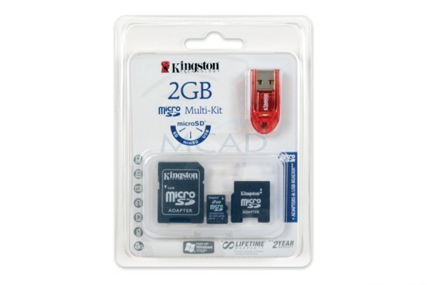 - Une Micro SD de 2Go avec un adaptateur Mini SD, un adaptateur SD, un adaptateur Clé USB.