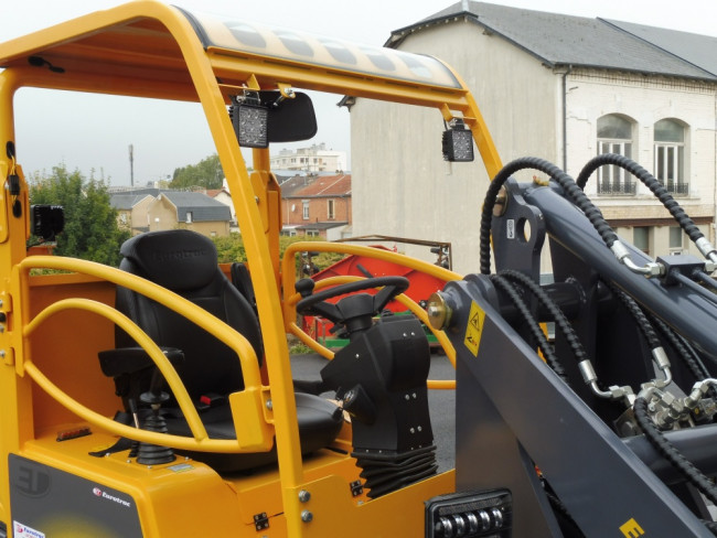 La chargeuse articulée Eurotrac W12 S est utilisée pour son confort d’utilisation et ses performances. Son nouveau moteur KUBOTA D1505 de 26 CV 4 cylindres avec un couple plus important que son prédécesseur pour répondre aux nouvelles normes anti-pollution STAGE 5, avec transmission hydraulique et hydrostatique à deux vitesses de marque BONDIOLI PAVESI permet à ce valet de ferme de développer une puissance de levage maximale de 1280 kg. Avec une hauteur de levage sous godet de 281 cm, la chargeuse W12 S est l’allié idéale pour les chantiers importants de manutention. Sa finition soignée avec ses phares routiers et de travails à LED, font de cette machine l’outil indispensable préféré des fermes d’élevages et céréalières.