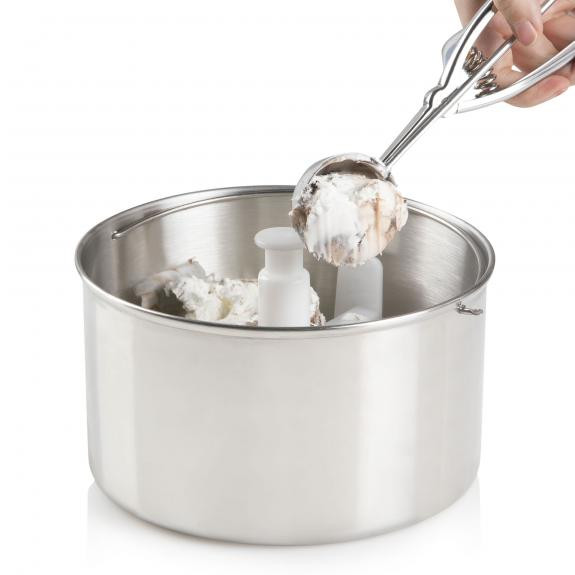 Le bol amovible XXL en acier inoxydable d'une capacité de 2,5 litres vous permet de préparer de grandes quantités de glace pour satisfaire toute la famille.