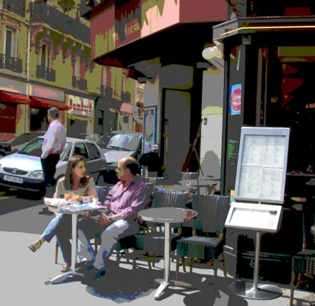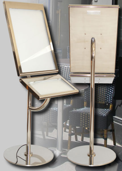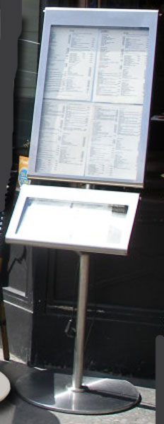 Bonjour, nous souhaiterions avoir un porte menu pour afficher des menus et visuels à l"entrée d"un point de vente à l"aéroport de Roissy Charles de Gaulle.