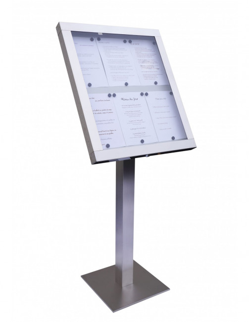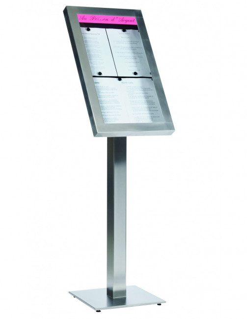 Ce porte-menu sur pied inox est étanche et adapté à une utilisation extérieure. Il résiste à la corrosion grâce à sa structure en inox.