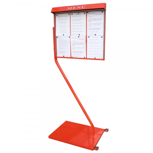 Ce porte menu sur pied 500 x 600 x 1880 mm de 6 pages a un éclairage LED et une dimension d'affichage de 680 x 310 mm.