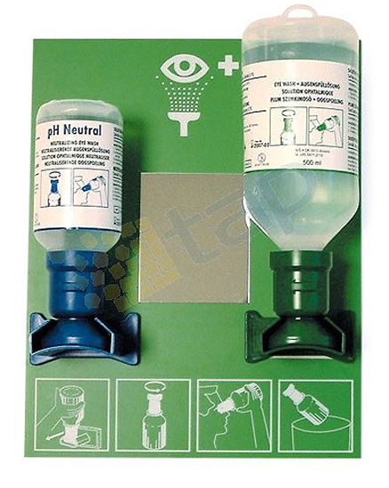 Contient : - Un lave oeil de 500 ml de solution ophtalmique stérile (vert) pour le nettoyage et la réhydratation de l'oeil. - Un flacon de 200 ml PH neutre (bleu) neutralise les acides et les bases en moins de 20 sec.