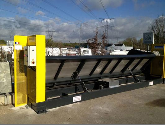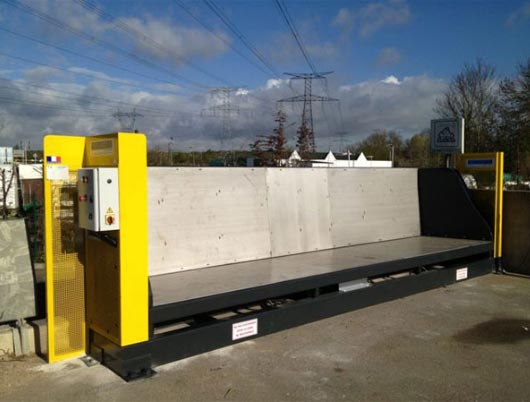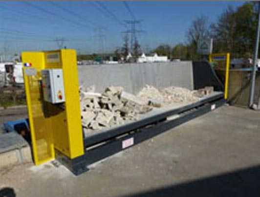 Il s'agit également d'une barrière de sécurité pour déchetterie, permettant à la fois de " vider " dans la benne lorsque celle-ci est à quai, mais aussi de barrière lorsque le système est fermé.