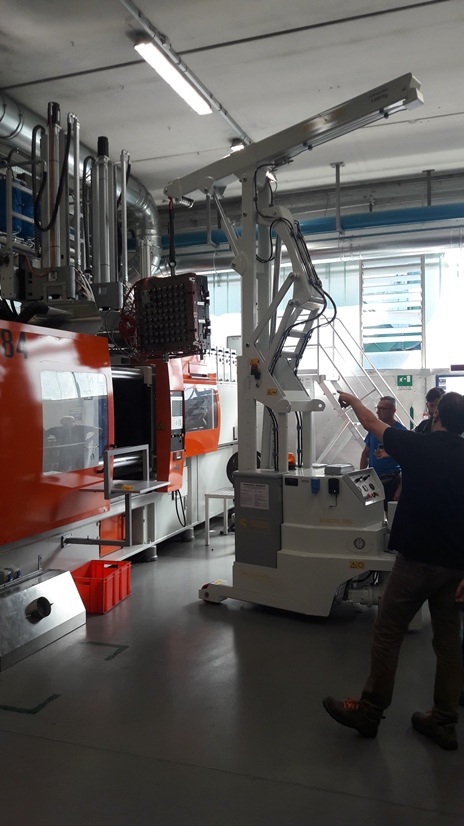Elle a été conçue pour répondre aux exigences des clients à la recherche de moyens de manutention permettant d'effectuer dans un minimum de temps et en toute sécurité des changements de moule jusqu’à 2.000 Kg de poids.