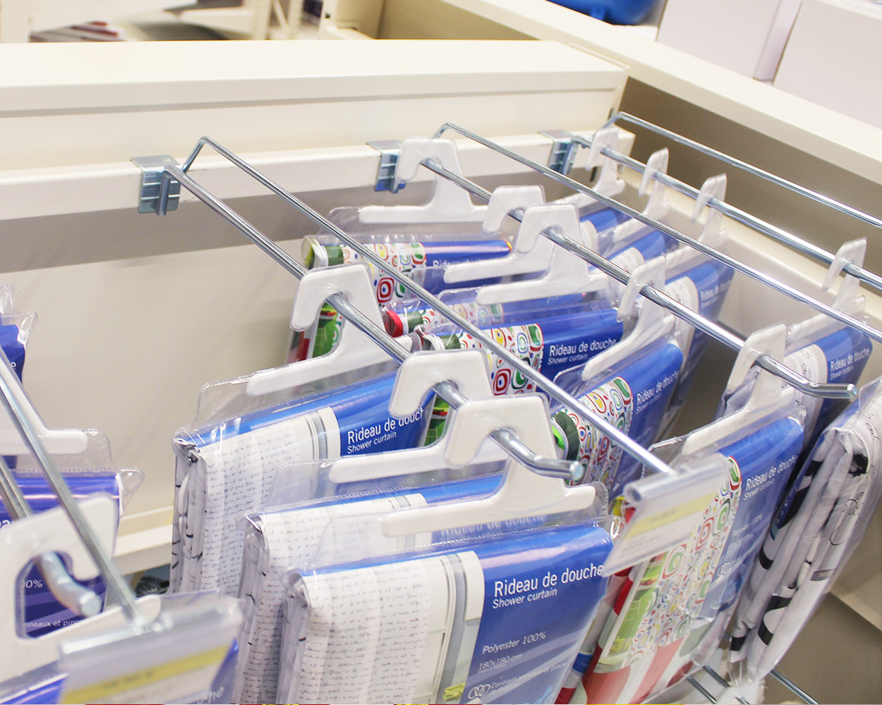 Des broches de profondeur de 60 cm, ayant des trous européens et comportant un porte étiquette. Il faudrait qu"il y ait 2 cm d"accroche sur le fond.
