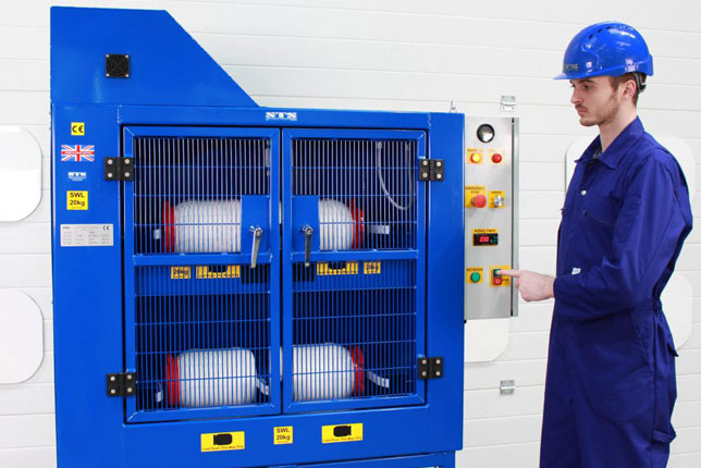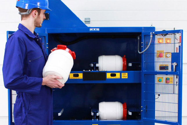 Conçu dans un souci d’ergonomie et de simplicité. Un opérateur charge manuellement les fûts dans la machine avant de fermer les portes lors de la fermeture des portes, les circuits électriques sont mis sous tension.