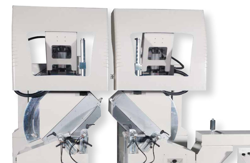- Inclinaison pneumatique de l’unité de sciage 20° / 45° / 90° / 135° avec butées mécaniques pour dégrées intermédiaires.