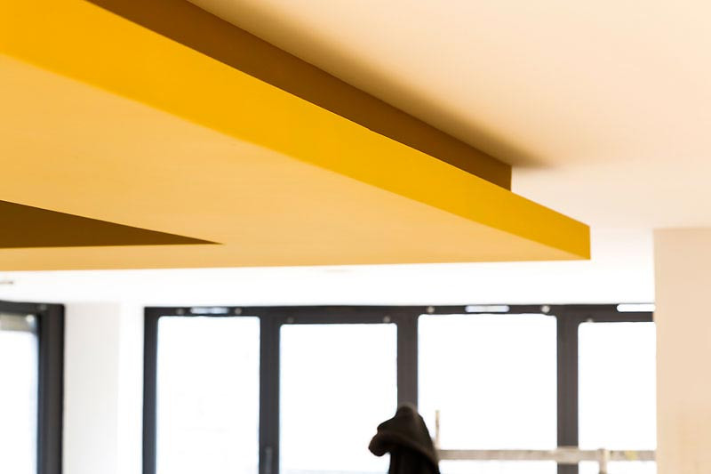 Le faux plafond est fabriqué sur-mesure dans le but de personnaliser les locaux de travail lors de l'agencement.