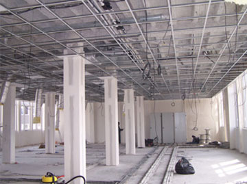 Spécialisée dans la fourniture et pose de faux plafond suspendu, cloison sèche, qualité acoustique, coupe feu, hydrophuge, esthétique, grande hauteur.