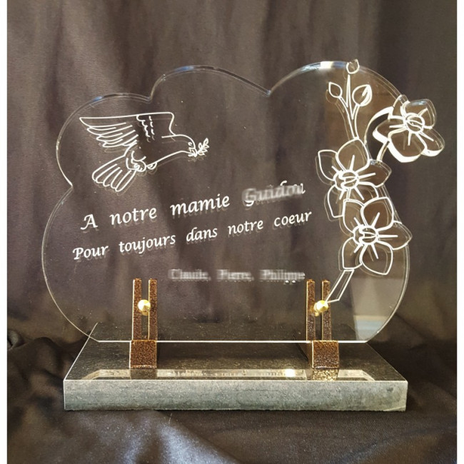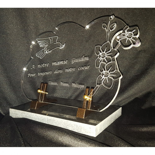 C'est une plaque funéraire en plexiglas avec socle en granit.