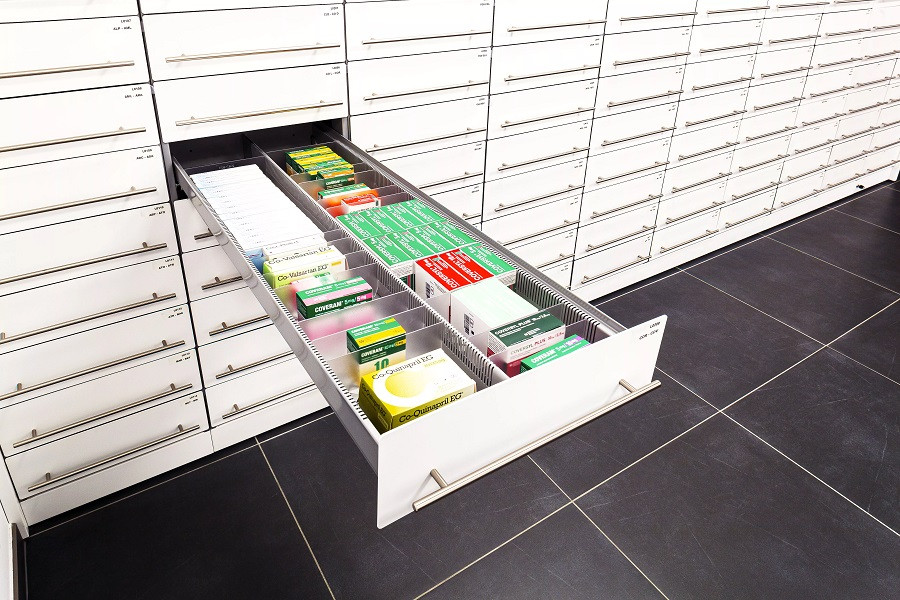 Demandes de devis pour Colonne à tiroirs pour pharmacie - Fermeture automatique - Dim. P1100 x H2200 mm