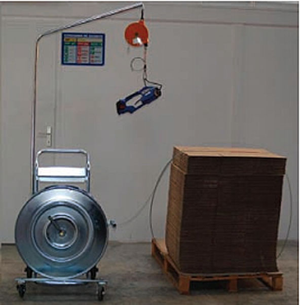 06/07/2020pour le cerclage sur ligne pour réduire le port de la cercleuse et avoir un porte bobine si le produit est concluant. on en achèterais plusieurs. connaitre le prix en priorité.