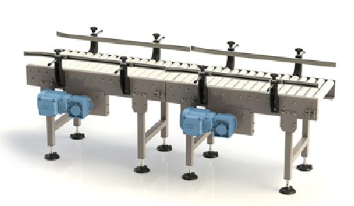 - Convoyeur à rouleaux commandés avec entraînement par pignons/chaîne