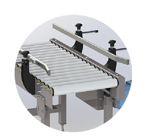 transporteur à rouleaux motorisé est utilisé pour le transport de cartons, de bac plastique ainsi que tout autre contenant à fond plat.