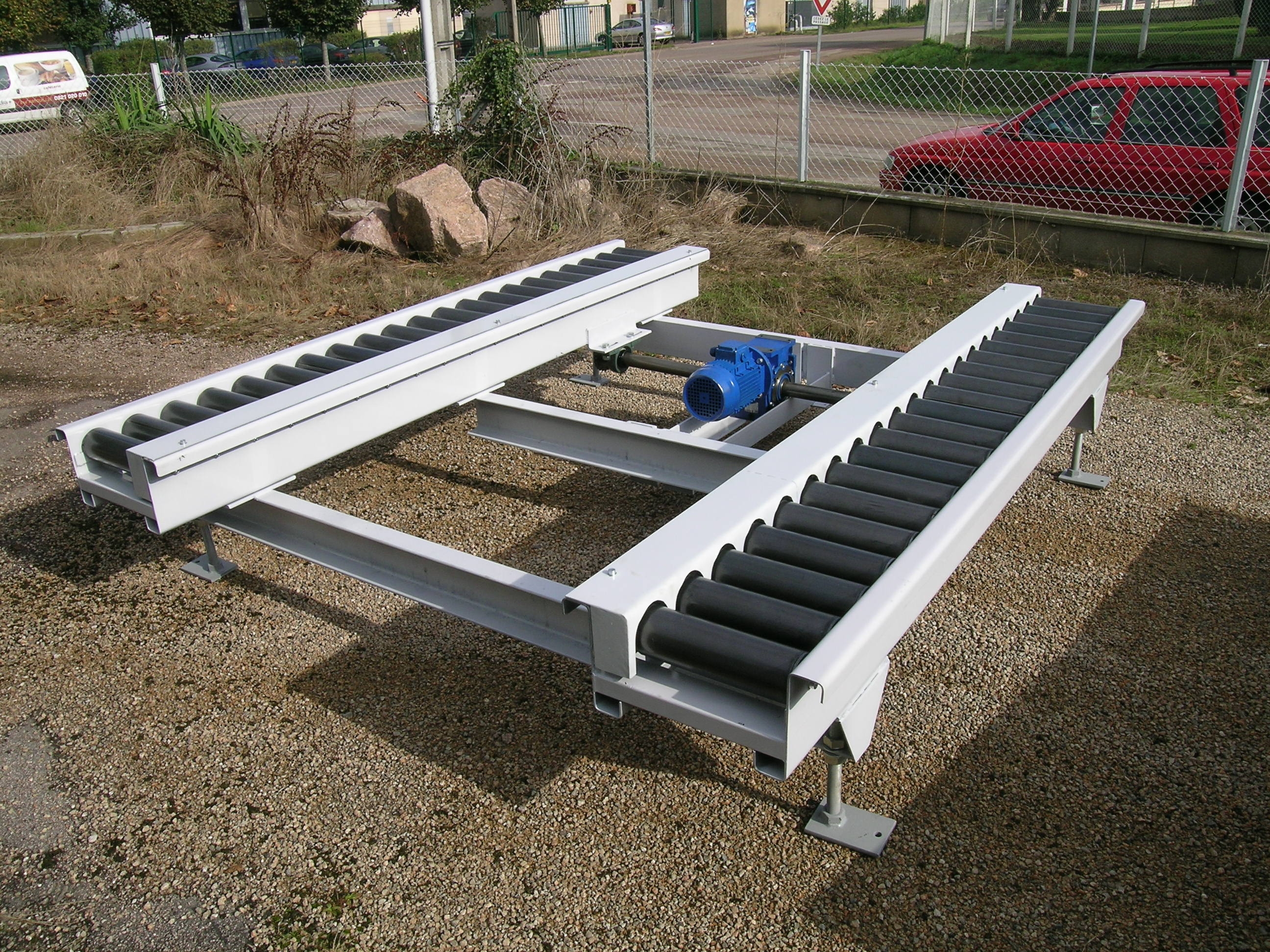 2 convoyeurs à rouleau non motorisé,avec une hauteur réglable avec inclinaison sur une charges f