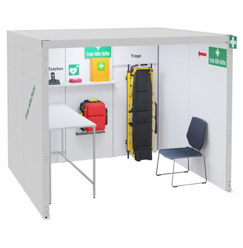 • 7 x cloisons acoustiques, modules de tôle encastrables, dont 3 x modules de 1.000 mm de large et 4 x modules de 1.250 mm de large, profondeur 105 mm, hauteur 2.500 mm