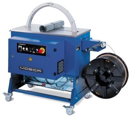 Machine compacte robuste et très rapide elle peut être intégrée dans des lignes automatiques dans ce cas, le cerclage se déclenche par échange de signaux et le positionnement des colis est fait par l'opérateur .