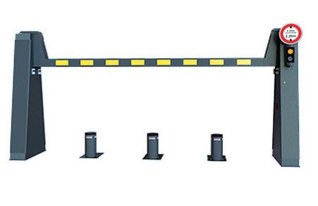 La poutre levante motorisée avec bornes escamotables est une protection de parking destinée à limiter l'accès des véhicules.