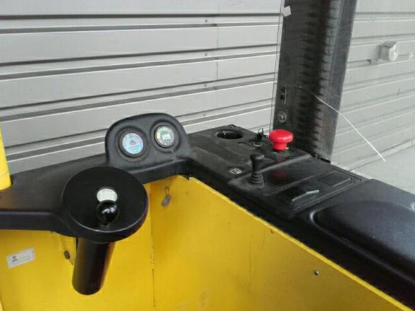 Ce gerbeur porté assis d'occasion est un appareil de levage pratique pour la préparation des commandes.
