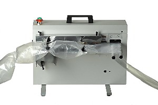 Elle fonctionne à l’air ambiant, et gonfle différents formats de coussins à partir d'une petite bobine de film.